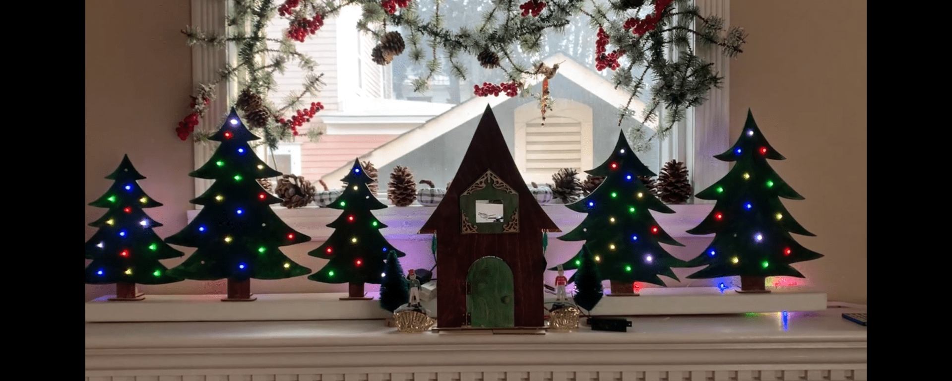 This Christmas display is powered by a CPX/Crickit and programed with CircuitPython. The Christmas trees and house are made of thin wood cut on a CO2 laser cutter. The ballerina spins when the magnetic door sensor is opened. The cuckoo like bird and soldiers are activated by capacitative touch.